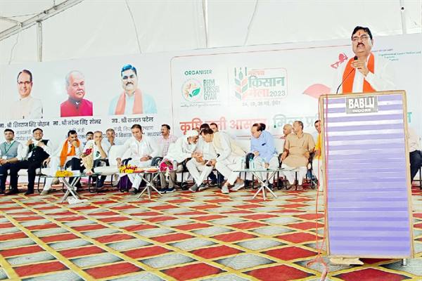 किसान-कल्याण एवं कृषि विकास मंत्री श्री कमल पटेल ने कहा है कि किसान मेले का अधिक से अधिक लाभ उठायें। उन्नत खेती और अधिक उत्पादन के लिये तकनीकी ज्ञान से स्वयं को समृद्ध करें। उन्होंने कृषि महाविद्यालय इंदौर में बुधवार को मालवा किसान मेला-2023 का शुभारंभ किया। मंत्री श्री पटेल ने मेले में किसानों को कृषि रत्न सम्मान से सम्मानित किया और किसान मेले का अवलोकन भी किया। मेले में श्री दर्शन सिंह चौधरी, श्री महिपाल सिंह, अन्य जन-प्रतिनिधि और कृषक उपस्थित थे।