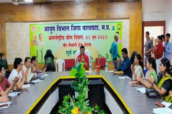 राज्य मंत्री श्री कावरे ने जिले में पदस्थ विभागीय अधिकारियों से कहा कि जन-सामान्य को स्वस्थ जीवन-शैली के लिये योग के महत्व के बारे में निरंतर बताया जाना चाहिये। बैठक में बताया गया कि सामूहिक योगाभ्यास के लिये जिले में स्थानों का चयन कर लिया गया है। इस वर्ष अंतर्राष्ट्रीय योग दिवस की थीम “वसुधैव कुटुम्बकम के लिये योग” रखी गई है।