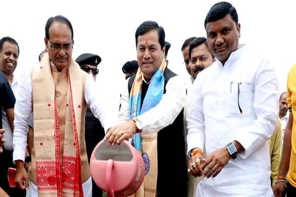 मुख्यमंत्री श्री चौहान और केन्द्रीय आयुष मंत्री श्री सोनोवाल ने रोपे पौधे