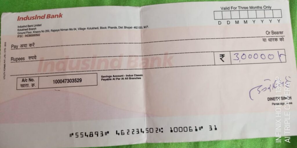 खबर खालसा डिजिटल न्यूज़ चैनल के द्वारा फरार बिल्डर की पड़ताल शुरू की गई तब सत्यता निकल कर कुछ और सामने आई है ₹300000 का फर्जी चेक देकर धोखाधड़ी करने वाला फरार बिल्डर दिनेश पटेल उक्त पते पर निवास नहीं करता है, उसका वर्तमान मैं निवास ग्राम खजूरी सड़क इंदौर रोड है इसकी ग्राम पंचायत सरपंच गुलाब बाई पटेल है जोकि फरार बिल्डर की पत्नी है।