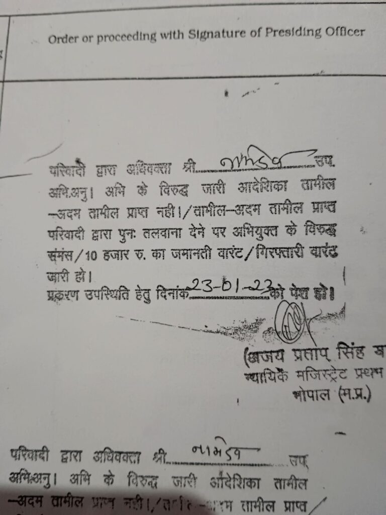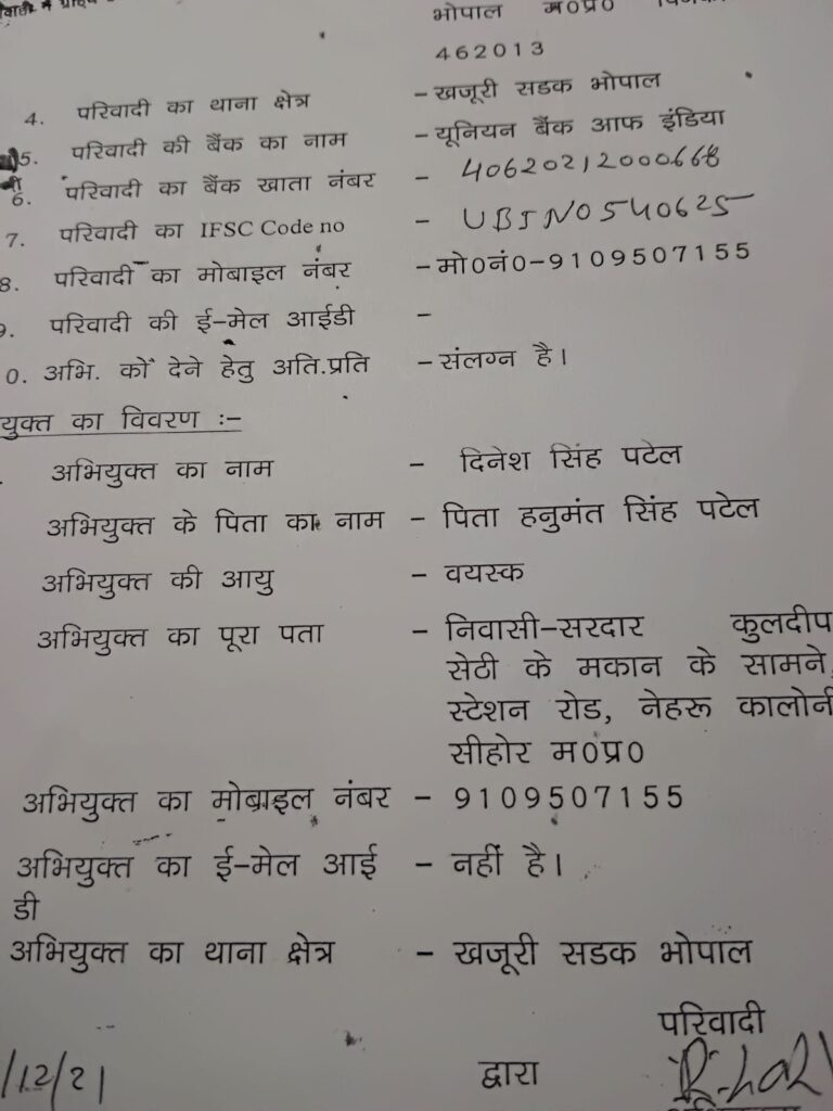 धोखाधड़ी में फरार बिल्डर दिनेश सिंह पटेल पिता हनुमंत सिंह पटेल जो कि खजूरी सड़क का निवासी है जिसके माननीय न्यायालय के द्वारा गिरफ्तारी वारंट जारी किए जा चुके हैं और बिल्डर फरार है, जिसे थाना खजूरी सड़क पुलिस पकड़ने में असमर्थ है जिसकी खास वजह है फरार बिल्डर का स्थाई पता जो कि धोखाधड़ी करने वाले फरार बिल्डर ने फरियादी राजकुमार लाखा पिता गंगाराम लाखा निवासी 10 नंबर गुरुद्वारा मार्केट अरेरा कॉलोनी भोपाल था उसे फर्जी चेक देकर एवं अपना निवास स्थान गलत बताया गया था। जिसके आधार पर माननीय न्यायालय ने जो उसमें पता सरदार कुलदीप सिंह शेटी के मकान के सामने स्टेशन रोड नेहरू कॉलोनी सीहोर का लिखवाया गया है उस वक्त बिल्डर उक्त पते पर रहता था जिसकी वजह से पुलिस गिरफ्तार करने में विफल है।