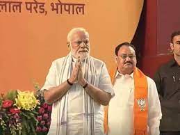 भोपाल। प्रधानमंत्री नरेन्द्र मोदी मंगलवार को एक दिवसीय प्रवास पर भोपाल आए है। रानी कमलपति स्टेशन से वंदे भारत ट्रेनों को हरी झंडी दिखाने के बाद वे मोतीलाल नेहरू स्टेडियम पहुंचे वे यहां से ‘मेरा बूथ, सबसे मजबूत’ अभियान के अंतर्गत लगभग 10 लाख बूथों पर देशभर के भाजपा कार्यकर्ताओं को वर्चुअल संबोधित कर रहे है।